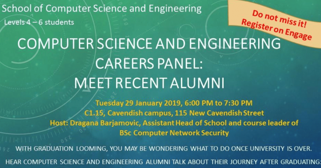 Jan 2019: Tanisha was invited by the University of Westminster as a panellist to share her degree and professional experience with the students.