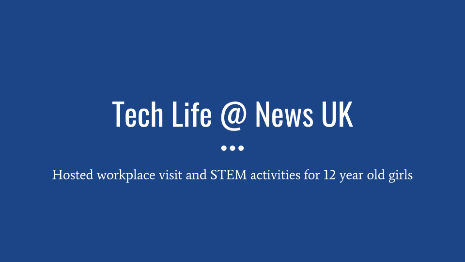 Feb 2020: Hosted workplace visit and STEM activities on Business Analyst, Data Science and UX&D for 12 year old girls at News UK!